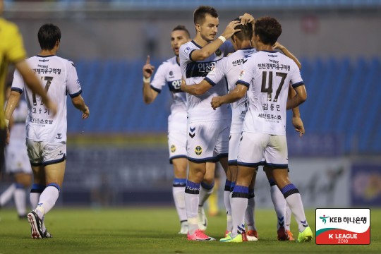 인천은 상대 실수를 득점으로 연결했다. 전반 26분 전남 박스 안에서 이슬찬이 크로스를 흘렸다. 남준재가 잡아 문전으로 크로스 무고사가 몸을 날려 밀어 넣었다.