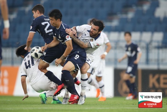 벼랑 끝에 몰린 두 팀의 경기는 초반부터 치열했다. 대전이 먼저 공격했다. 전반 6분 키쭈가 올려준 공을 박인혁이 머리에 맞히며 첫 번째 슈팅을 기록했다. 서울 이랜드도 1분 뒤 이현성이 발리 슈팅으로 맞불을 놨다.