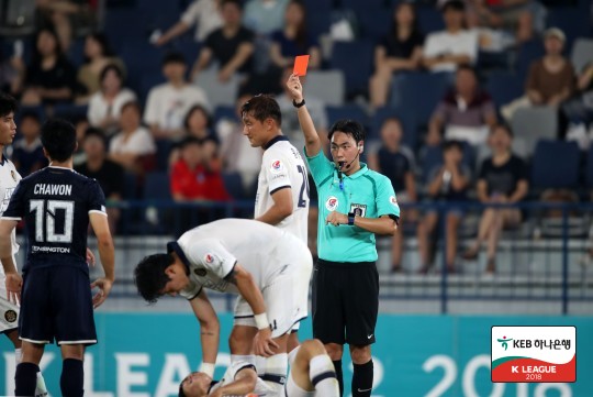 변수가 생겼다. 후반 21분 볼경합 과정에서 고차원이 박재우에게 백태클을 가했다. 주심은 가차 없이 붉은색 카드를 꺼내, 고차원에게 퇴장 명령을 내렸다.
