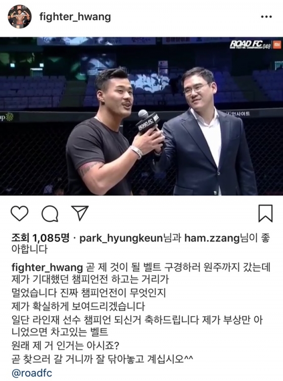 황인수는 SNS도 활용해 도발을 이어갔다. 그는 "곧 제 것이 될 벨트 구경하러 원주까지 갔는데 제가 기대했던 챔피언전 하고는 거리가 멀었습니다. 진짜 챔피언전이 무엇인지 제가 확실하게 보여드리겠습니다. 일단 라인재 선수 챔피언 되신 거 축하드립니다. 제가 부상만 아니었으면 차고 있는 벨트 원래 제 것인 건 아시죠? 곧 찾으러 갈 거니까 잘 닦아놓고 계십시오"라고 자신감을 과시했다.