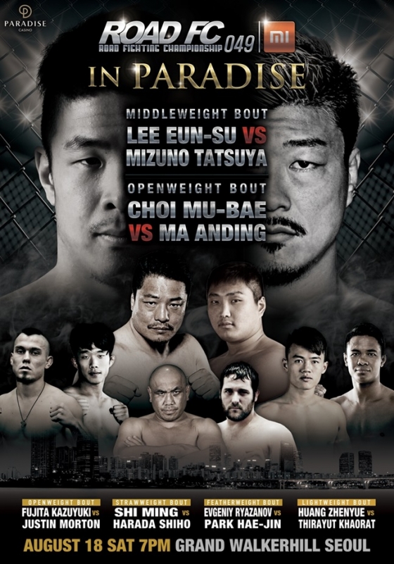 'Asia No.1' ROAD FC (로드FC)가 이 여름이 가기 전 또 한 번 찾아온다. 오는 8월 18일 그랜드 워커힐 서울에서 XIAOMI ROAD FC 049를 개최한다. ROAD FC 김대환 대표가 "격투 팬들의 향수를 자극하는 대진들로 구성하겠다"고 밝혀 기대감을 모으고 있는 이번 대회의 전체 대진과 포스터가 공개됐다.