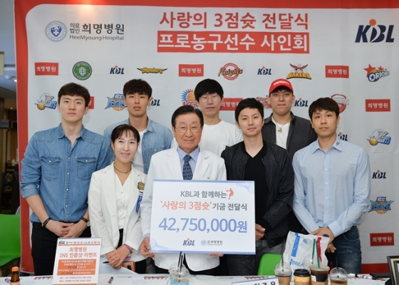 KBL과 희명병원이 공동으로 '사랑의 3점 슛 캠페인'을 통해 마련된 기금으로 제공되는 이번 무료 인공관절 수술은 무릎 퇴행성관절염 등으로 고통을 받는 인공관절 수술비 본인 부담금 전액을 지원한다. 2017-2018시즌 '사랑의 3점슛 캠페인'을 통해 적립된 금액은 총 4275만 원이다.