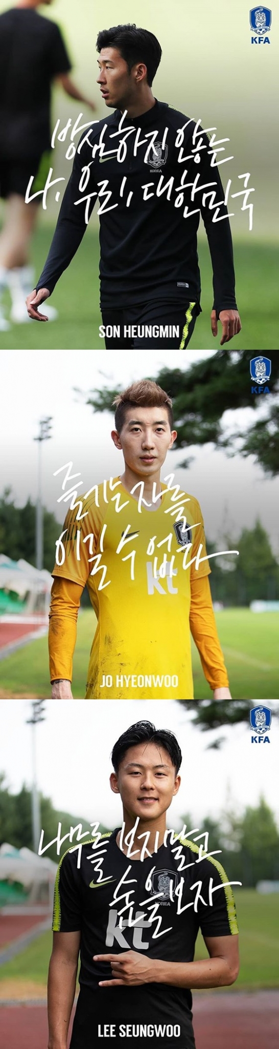 이시영은 "NO PAIN NO GAIN", 김문환은 "매 경기 혼신을 다하지 않으면 승리는 없다", 장윤호는 "무조건 승리"라고 각오를 전했다.