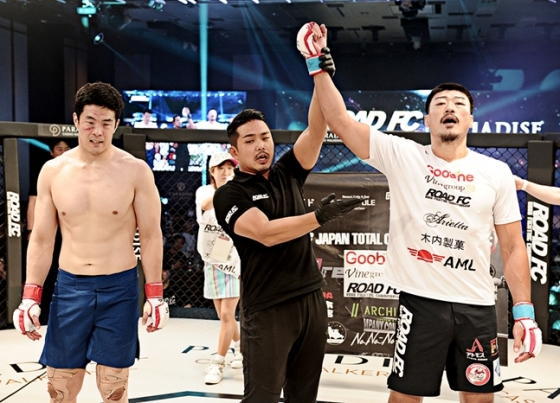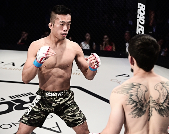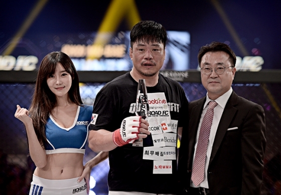 경기는 하이라이트로 흘러갔다. '아재 파이터' 최무배가 나섰다. 26살이나 어린 아들급 마안딩(22·중국)을 맞아 파운딩으로 TKO 승리를 가져갔다. 최무배는 시작과 동시에 원투펀치를 맞으며 위기를 맞았다. 잠시 휘청거린 최무배는 일격을 가했다. 이어 난타전으로 펼쳐진 순간 최무배가 마안딩을 넘어뜨렸다. 계속해서 펀치를 꽂아넣었지만 마안딩이 빠져나왔다. 경기 후반 최무배의 집중력이 빛났다. 다시 마안딩을 넘어뜨린 최무배는 여러 차례 펀치를 꽂아넣었다. 그러자 심판이 1라운드 종료 53초를 남기고 경기 중단을 선언했다. TKO 승을 거둔 순간이다.