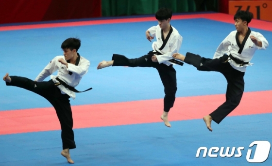 한국은 19일 오후 인도네시아 자카르타 컨벤션센터(JCC) 플래너리 홀에서 열린 품새 남자 단체전과 여자 단체전, 남자 개인전에서 결승 진출에 성공했다. 단, 여자 개인전은 결승 진출에 실패했다.
