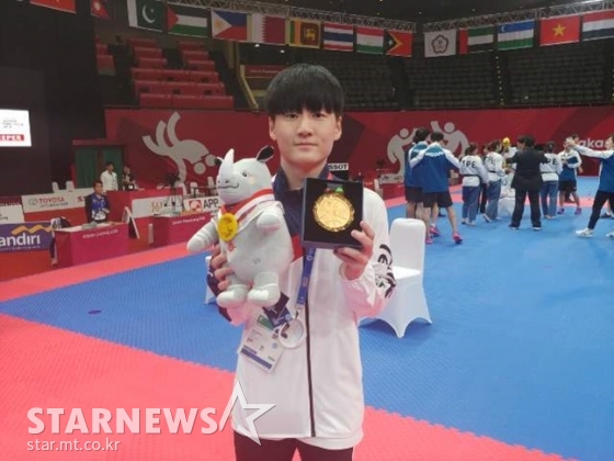 한국 남자 태권도가 품새 단체에서 금메달을 따냈다. 한영훈(25·가천대)-김선호(20·용인대)-강완진(20·경희대)이 금메달을 합작했다. 특히 김선호는 부상을 안고 경기에 나서는 투혼을 선보였다.