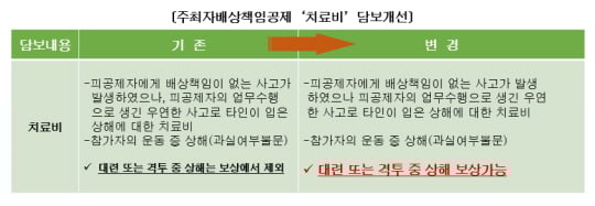이로써 타격종목은 기존 ‘주최자배상책임공제’를 가입 시 운동 중 발생되는 상해사고 시에 과실여부를 불문하고 치료비 항목이 제외되었으나 앞으로는 가입한도 내 치료비 보상이 가능해진다.