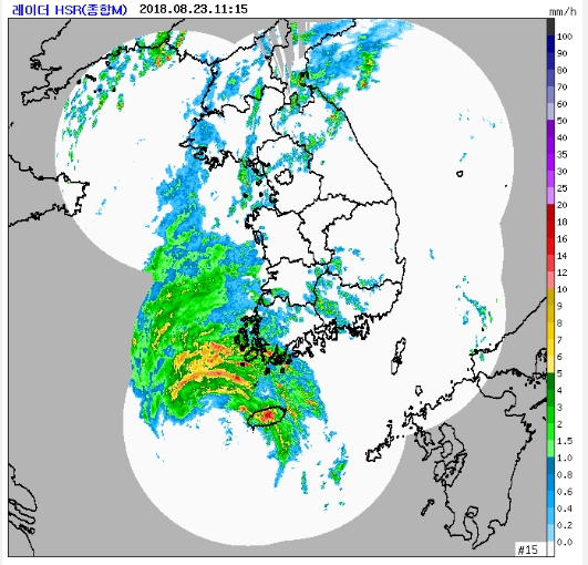 솔릭은 23일 오전 11시 현재 한반도 남서쪽에서 서해를 따라 북진 중이다. 한반도를 직접 영향권에 넣어 전국적으로 기상특보가 발효된 상태다.