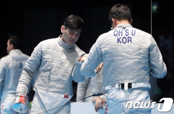 구본길(29·국민체육진흥공단)-오상욱(22·대전대)-김정환(35·국민체육진흥공단)-김준호(24·상무)로 구성된 한국 남자 펜싱 사브르 대표팀은 23일 오후 3시(이하 한국시간) 인도네시아 자카르타의 자카르타 컨벤션 센터에서 열린 '2018 자카르타-팔렘방 아시안게임' 펜싱 남자 사브르 단체전 준결승에서 홍콩에 45-20의 승리를 거뒀다.