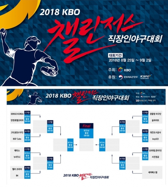 KBO(총재 정운찬)가 주최하고 문화체육관광부가 후원하는 ‘2018 KBO 챌린저스 직장인 야구대회’가 오는 25일 강원도 횡성 베이스볼 파크에서 개막한다.