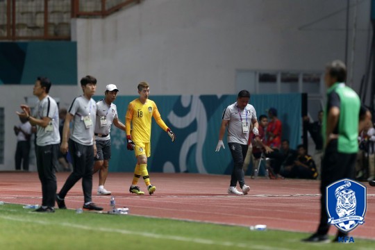 8강 진출에 성공했지만 김학범 감독 머리는 복잡하다. 2018 국제축구연맹(FIFA) 러시아 월드컵과 아시아게임에서 안정적인 선방을 보인 조현우가 쓰러졌다. 조현우는 후반 8분 중거리 슈팅 선방 후 착지 과정에서 통증을 느꼈고, 벤치에 교체 신호를 보냈다.