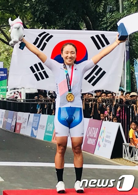 나아름(28·상주시청)이 아시안게임 사이클 여자 도로독주 2연패에 성공했다. 이번 대회 2관왕이다.