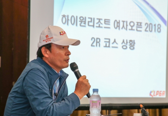 KLPGA 최진하 경기위원장은 “오전에 페어웨이와 그린에 물이 차고, 벙커에는 물길까지 생길 정도로 폭우가 쏟아져 1시간 단위로 총 5차례에 걸쳐 경기 시작을 늦췄다”고 말했다.