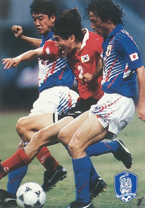 아직도 팬들의 기억 속에 선명한 경기다. 말레이시아에서 열린 아틀란타 올림픽 아시아 최종예선에서 이미 본선 진출권을 확보한 양 팀은 우승 트로피를 놓고 부딪혔다. 이마를 다친 이상헌이 헤딩골로 선제했으나, 곧바로 조쇼지에게 오버헤드킥 동점골을 허용했다. 하지만 잠시후 최용수가 페널티킥 결승골을 터뜨리며 마침표를 찍었다.