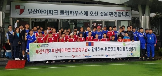 지난 9월 1일(토) 오전 부산아이파크는 부산 강서체육공원 내 클럽하우스에서 오는 9월 10일(월)부터 개회식을 진행하는 2018 HOPE CUP(호프컵) 출전을 위해 입국한 몽골 아동들을 초청해 클럽 하우스 투어, 유니폼, 학용품과 각종 기념품을 전달했다. 좋은 성적을 거둘 수 있도록 KFA 지도자 자격증을 소지한 부산아이파크 유소년 축구 코치에게 원포인트 레슨도 진행하고, 부산세계비전지역아동센터 아이들과도 친선 경기도 개최하며 우애를 다질 수 있는 기회를 제공했다..