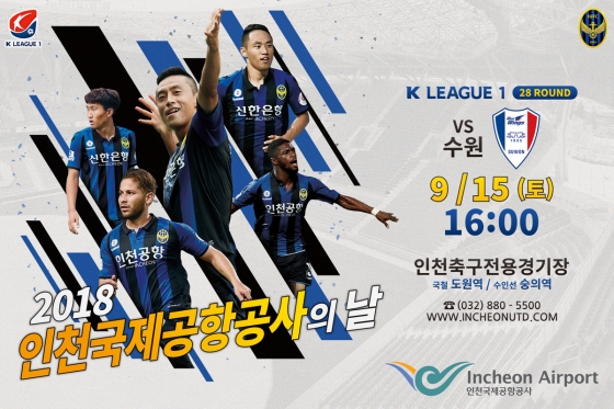 특별히 이번 수원전 홈경기는 ‘인천국제공항공사의 날’ 브랜드데이로 진행된다. 지난 2013년부터 인천 구단의 프리미어 스폰서로 함께하고 있는 인천국제공항공사는 동북아 허브공항을 목표로 지속적인 성장을 거듭하고 있다. 이번 브랜드데이를 맞아 인천국제공항공사 임직원, 가족들이 경기장을 찾을 예정이다. 또한 인천국제공항공사는 인천 축구 꿈나무로 불리는 관내 유소년 축구부 선수들도 함께 초대하기로 했다.
