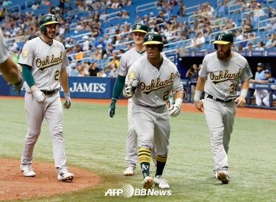 그랬던 오클랜드는 떨어졌던 것만큼이나 빠른 속도로 올해 갑자기 반등했다. 21일(한국시간) 벌어진 LA 에인절스와의 경기에서 21-3으로 압승을 거둔 오클랜드는 올 시즌에 이미 92승(61패)을 올리며 지구선두이자 디펜딩 월드시리즈 챔피언인 휴스턴(95승57패)를 3.5게임차로 추격하고 있다. 정규시즌 남은 경기가 9경기뿐이어서 휴스턴을 따라잡고 지구 우승을 따내는 것은 쉽지 않아 보이지만 그래도 아직 가능성은 남아 있다. 이미 와일드카드 티켓은 99.99% 확보한 단계며 와일드카드 순위 1위인 뉴욕 양키스(93승58패)에 2게임차로 추격하고 있어 와일드카드게임 홈필드도 아직 사정권내에 있다.
