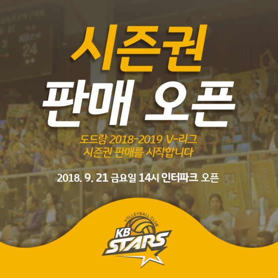 의정부 KB손해보험 스타즈 배구단이 2018-2019 도드람 V리그 시즌권을 21일 오후 2시부터 인터파크를 통해 판매한다.