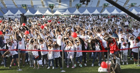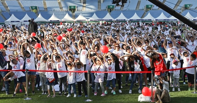 오후 4시 30분에는 시사저널 권대우 대표이사의 환영사와 SK 와이번스 치어리더들과 함께하는 준비운동을 마치고 희귀질환 아동 가족들과 참가자들이 함께 문학경기장 주변 4km를 걷는 '쉘위워크'가 진행됐다.
