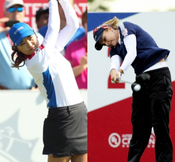 그리고 '세계랭킹 1위' 박성현(25·KEB하나은행)은 '세계랭킹 2위' 아리야 주타누간(태국)과 장타 대결을 펼칠 것으로 기대되고 있어 또 하나의 흥미로운 조다. 김인경(30·한화금융그룹)은 브론테 로(잉글랜드)와 막내 전인지(24·KB금융그룹)은 안나 노르드크비스트(스웨덴)과 맞대결을 펼친다.