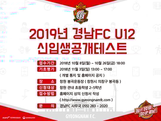 공개테스트와 관련한 자세한 문의사항은 경남FC 홈페이지 또는 전화(055-283-2020)로 문의하면 된다.