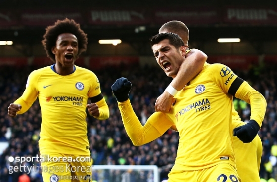 첼시가 조금씩 공격 방향을 찾아갔다. 전반 21분 윌리안의 빠른 오른발 슈팅이 골대를 강타했다. 아쉬울 필요가 없었다. 1분 뒤 선제골이 터졌다. 전반 22분 바클 리가 찔러준 공이 모라타와 골키퍼의 일대일 상황을 만들었고, 깔끔한 슈팅이 골망을 흔들었다.