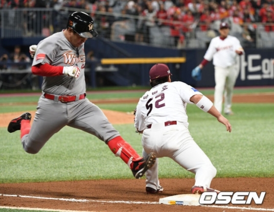 SK 와이번스 이재원이 주루 도중 뒷꿈치에 통증을 느껴 선수 보호차 교체됐다.