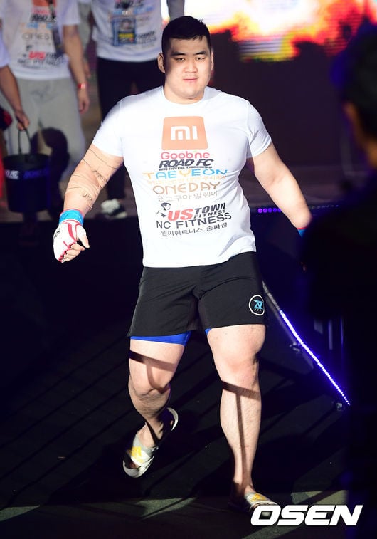'괴물 레슬러' 심건오가 '싱어송 파이터' 허재혁을 제압하며 로드FC 3연승을 달렸다. 경기 시작 후 19초 만에 허재혁을 눌렀다.