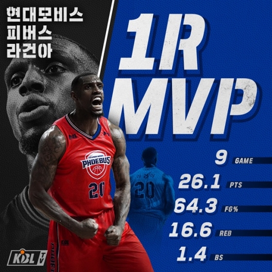 라건아는 지난 1라운드 9경기에서 평균 33분 54초를 출전해 26.1득점(3위), 16.6리바운드(1위), 1.4블록(5위)을 기록했다.