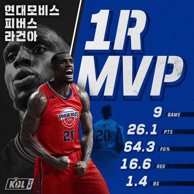 울산 현대모비스 피버스의 라건아(29)가 개인 통산 두 번째 라운드 MVP에 선정됐다.