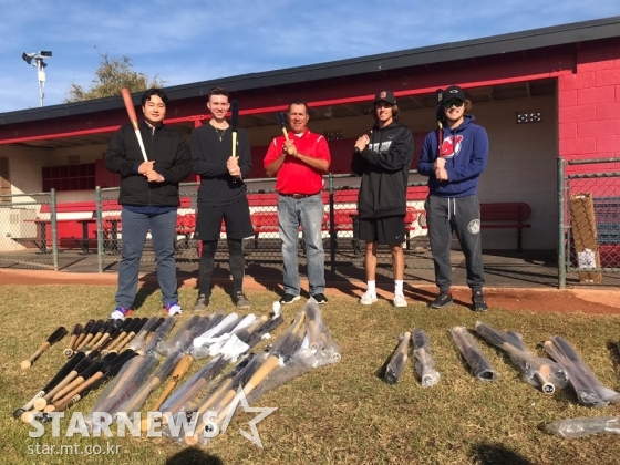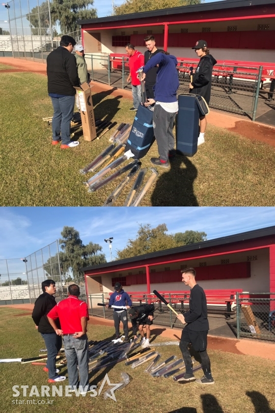 메이저리거들이 쓰는 배트를 손에 쥔 대학 선수들은 "크리스마스 선물을 받은 것 같다"며 아이처럼 기뻐했다. 그 자리에서 일일이 포장을 뜯어 손잡이를 잡아보며 손맛을 봤다. 한 자루에 150달러나 하는 선수용 방망이는 아마추어 학생들에게 최고급 아이템이다. 팀 주전 포수 조니 셔팩은 "이걸로 때리면 공이 훨씬 멀리 날아갈 것"이라며 활짝 웃었다.