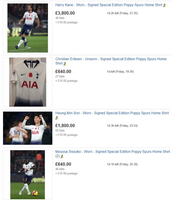 토트넘은 인터넷 경매 사이트 이베이(eBay)를 통해 크리스탈 팰리스전에 착용한 선수들의 유니폼에 대한 경매를 진행했다. 경매에서 얻은 수익금은 '로얄 브리티시 리전 포피 어피얼(Royal British Legion Poppy Appeal)'에 전액 기부한다는 계획이다.