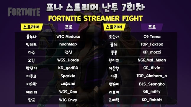 스트리머&프로게이머 듀오의 대결 '포트나이트 스트리머 난투' 25일 진행