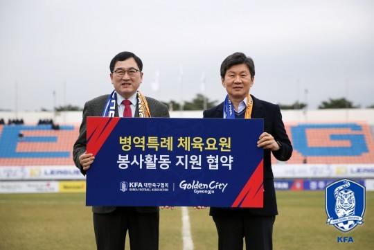 대한축구협회가 경주시와 병역특례 선수 봉사활동 지원에 대한 협약을 맺었다.
