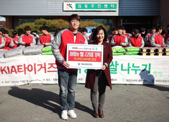 선수단과 구단 임직원은 이날 임동 내 소외계층 가정을 직접 방문해 20kg 들이 쌀 1포대와 전기매트를 전달할 예정이다. '사랑의 쌀'은 KIA 구단이 이번 시즌 운영한 물품보관함 수익금에 자체 예산을 추가해 마련했다. 여기에 구단 상품업체인 케이엔코리아도 모자와 학용품 등 400만원 상당의 물품을 후원했다.