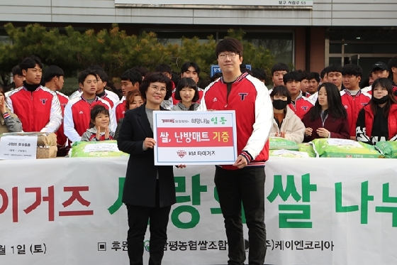 KIA 타이거즈가 광주-기아 챔피언스 필드 인근에 거주하는 어려운 형편의 주민들에게 사랑의 쌀 4600kg과 방한용품 등을 전달하며 지역민 사랑을 실천했다.