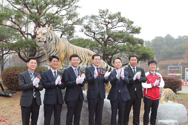 KIA 타이거즈가 멸종위기종인 백두산 호랑이 보존사업 홍보를 위해 조형물을 건립해 광주시에 기부했다.