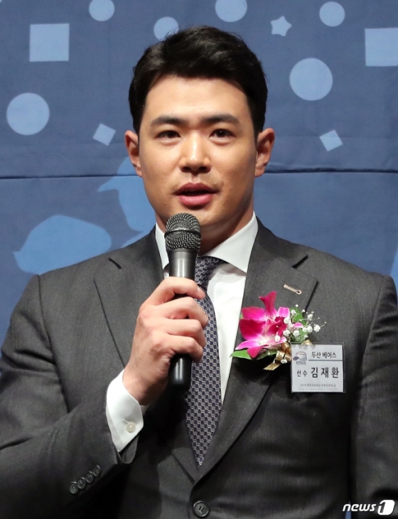 김재환은 올해 139경기 타율 0.334, OPS 1.062에 홈런 44개, 타점 133개를 올렸다. 역대 잠실을 홈으로 쓰는 구단 선수의 홈런 기록도 갈아치웠다. 하지만 금지약물을 복용해 징계를 받았던 선수의 수상이 정당한가에 대해 의견이 분분했다. 김재환은 2011년 10월 파나마 야구월드컵 참가 당시 도핑 테스트 양성반응을 보였다. 이듬해 10경기 출전 정지 징계를 받았다.