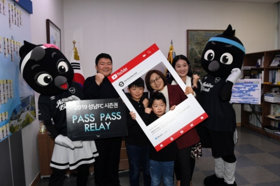 은수미 구단주와 윤지호 어린이 가족은 18일 오전, 성남시청에서 2019시즌 시즌권 1호 구매로 시즌권 판매 시작을 알렸다.