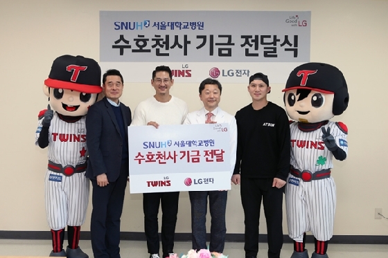 LG트윈스가 19일 LG전자와 함께 마련한 '사랑의 수호천사' 기금을 서울대학교 어린이병원에 전달했다.