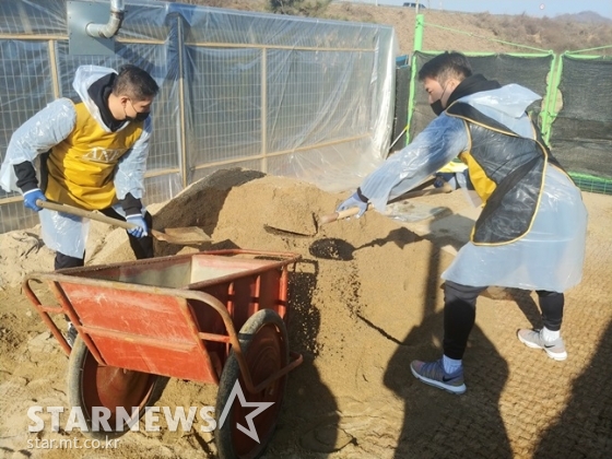 이날 전준우는 황재균과 함께 삽을 잡았다. 견사(犬舍)에 깔 흙을 퍼담는 작업. 3시간 가까이 진행됐다. 프로 선수들임에도 만만치 않은 작업이었다. 전준우와 황재균은 연신 "죽겠다"면서도 웃으면서 흙을 담았다.