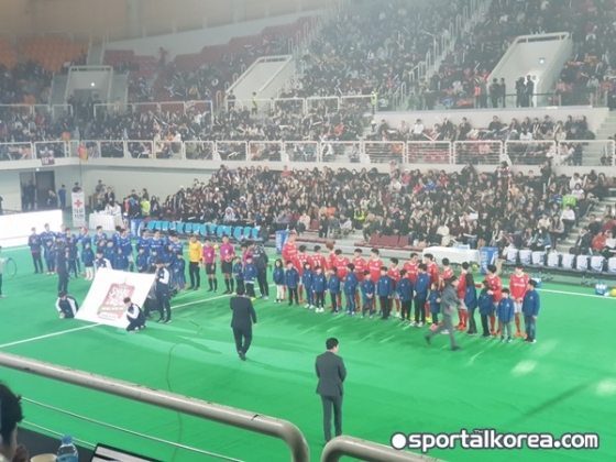 장내 아나운서의 개회 선포와 함께 시작된 사전 공연은 열정적인 퍼포먼스로 눈길을 끌었다. 선수들이 이름이 호명될 때마다 행사장은 함성으로 물들었다. 그중 지난 자카르타-팔렘방 아시안게임에서 활약한 김진야, 조유민이 소개될 때는 가장 큰 환호로 나왔다.