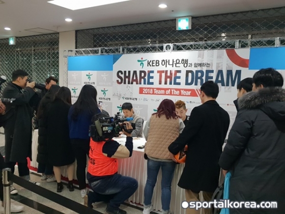 행사장 안은 이미 많은 팬들이 자리를 채운 상태였고, 선수들이 몸을 풀기 위해 입장하는 순간부터 박수로 그들을 맞이했다. “선수들 잘 생겼죠?”라는 장내 아나운서의 말에 열띤 반응으로 화답했고, 준비한 이벤트마다 적극적으로 참여하며 장내를 달궜다.