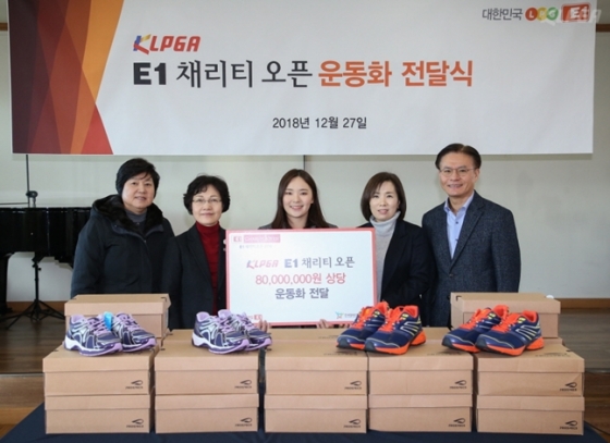 한국여자프로골프협회(KLPGA)와 LPG 전문기업 E1이 지난 27일 서울 용산에 위치한 '영락애니아의집'에 'E1 채리티 오픈' 기금으로 마련한 운동화를 전달했다고 밝혔다.