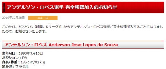 삿포로는 28일 구단 홈페이지를 통해 “서울에서 안델손이 이적했다”고 발표했다. 안델손은 “팬들에게 기쁨을 주겠다. 나를 믿고 기회를 줘서 감사하다. 기대에 저버리지 않도록 열심히 뛰겠다”는 소감을 전했다.