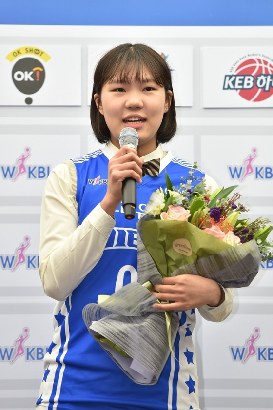 박지현은 8일 서울 회현동 우리은행 본점에서 열린 2018~2019 WKBL 신입선수 선발회에서 전체 1순위로 '최강' 우리은행에 지명됐다.