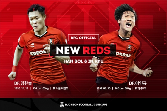 [스포탈코리아] 김성진 기자= 부천FC 1995가 수비수 감한솔(27)과 이인규(28)를 영입했다.