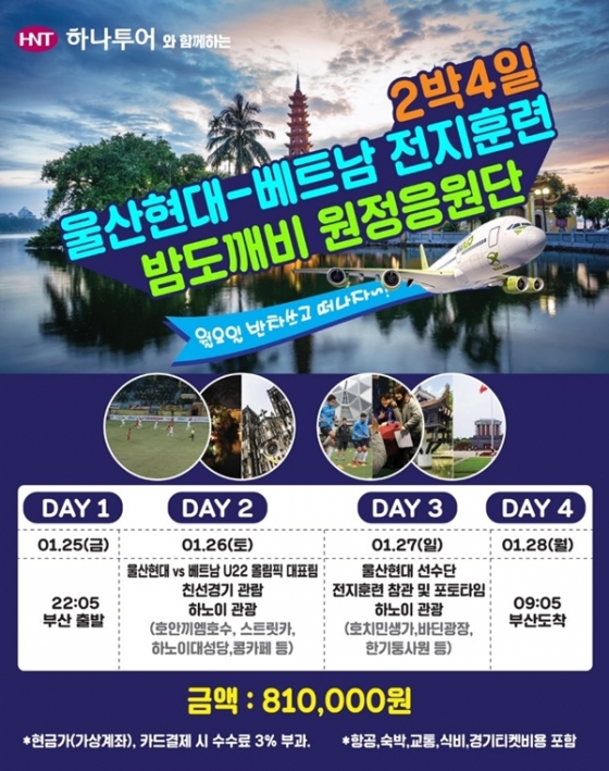 [스포탈코리아] 홍의택 기자= 울산현대가 베트남 하노이 동계 전지훈련 원정응원단을 모집한다.