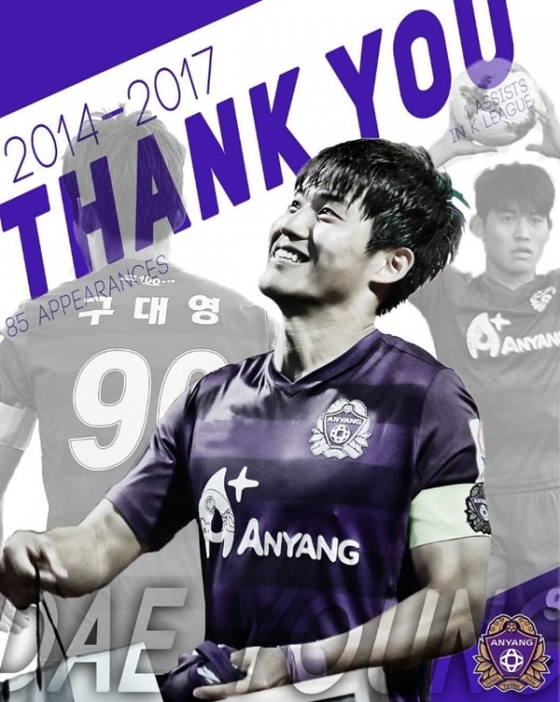 [스포탈코리아] 홍의택 기자= "멀리서나마 응원하겠습니다"(구대영), "꾸준히 잘했던 선수 구대영, 고맙습니다"(FC안양).