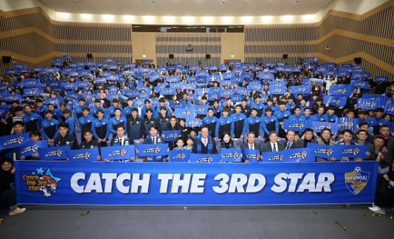 이번 시즌 울산은 아시아축구연맹(AFC) 챔피언스리그(ACL), K리그, FA컵 세 대회에서 우승에 도전한다. 김보경, 윤영선, 불투이스, 신진호, 김성준, 주민규 등 각 포지션에 걸쳐 검증된 자원을 영입했다. 2005년 이후 정상에 오르지 못한 리그 우승을 풀 적기라는 평가다. 팬들도 간절히 바라고 있다. 일단, 출발은 성공적이다. 지난 19일 페락FA와 아시아축구연맹(AFC) 챔피언스리그(ACL) 플레이오프에서 5-1 대승을 거뒀다. 부푼 기대 속에 출정식에도 많은 팬이 모여 반드시 ‘세 번째 별’을 달자며 성원을 보냈다.
